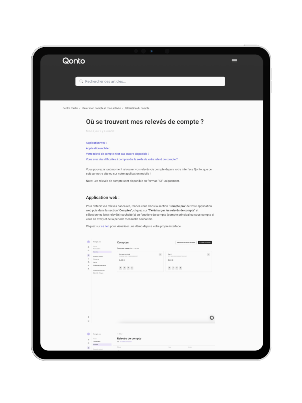 - Les relevés Qonto sont disponibles à la demande depuis votre espace client.